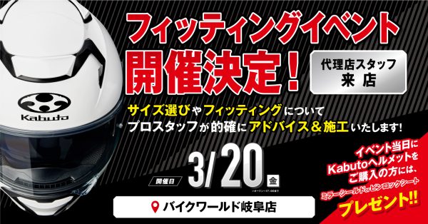 【フィッティングイベント開催決定!】 プロスタッフが来店!Kabutoヘルメット フィッティングイベント
