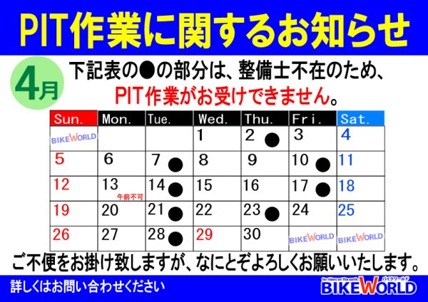 4月のPIT作業受付日について